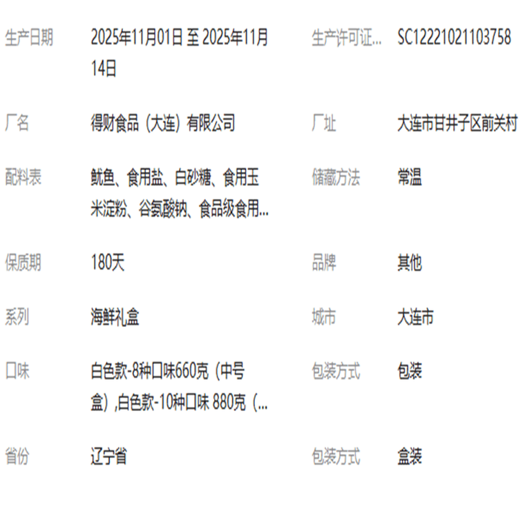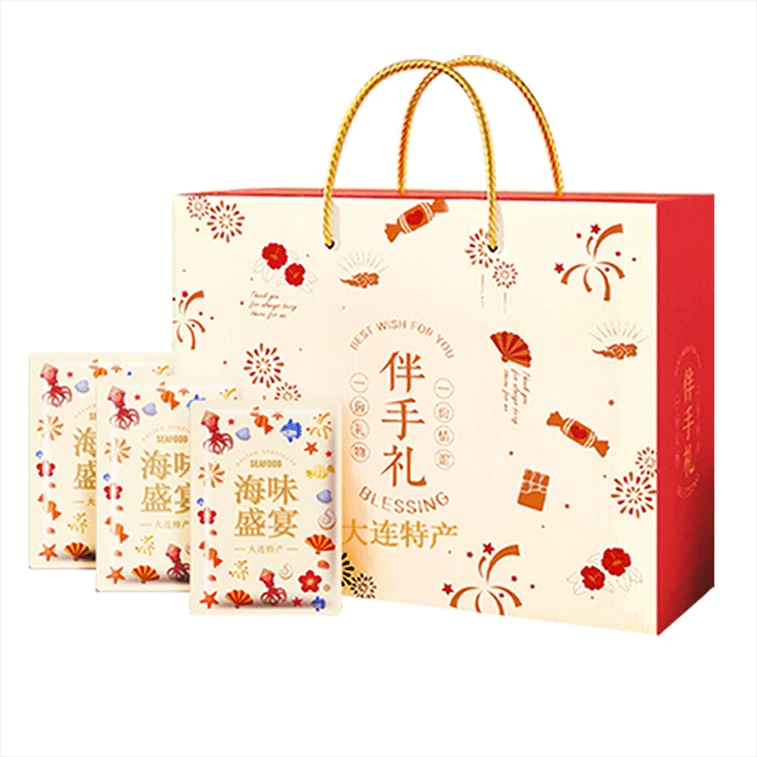 Dalian Specialty Gift Box – Seafood Snacks Souvenir, Shredded Squid, Grilled Fish Fillet, New Year Gift Pack, Ready-to-Eat Dried Seafood, White Version – 8 Flavors, 660g * 1 Box