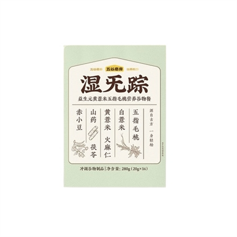 【中國直郵】 五穀磨屋 濕旡蹤 五指毛桃黃薏米祛濕粉20g*14條/盒 代餐營養早餐三伏天去濕氣