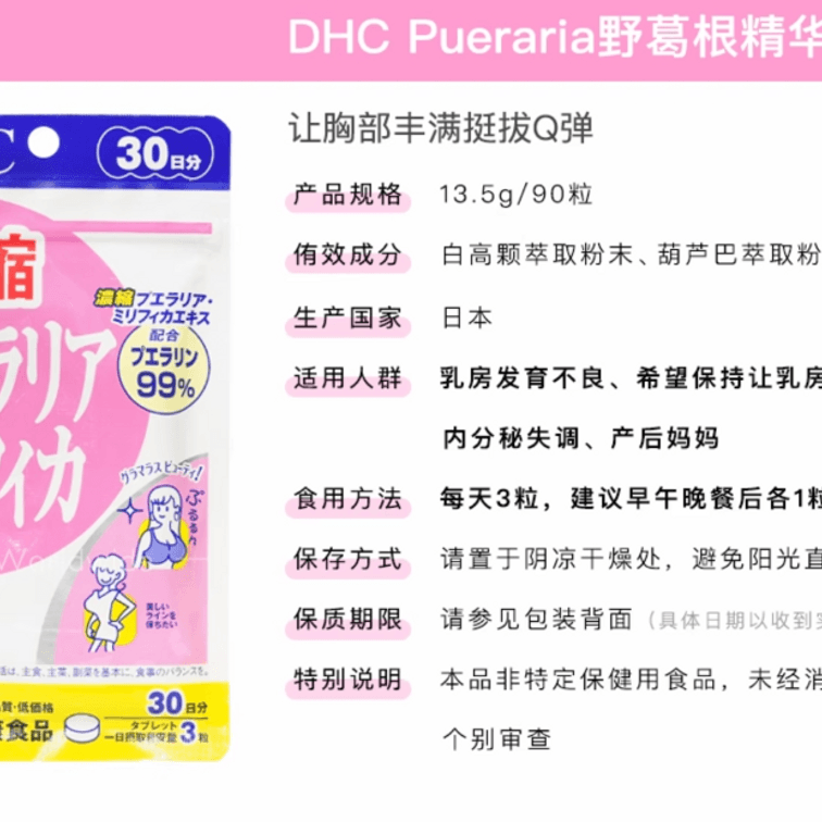 【日本直郵】DHC豐胸丸超濃縮Pueraria野葛根精華豐滿美胸丸挺拔胸變大90粒/30日量