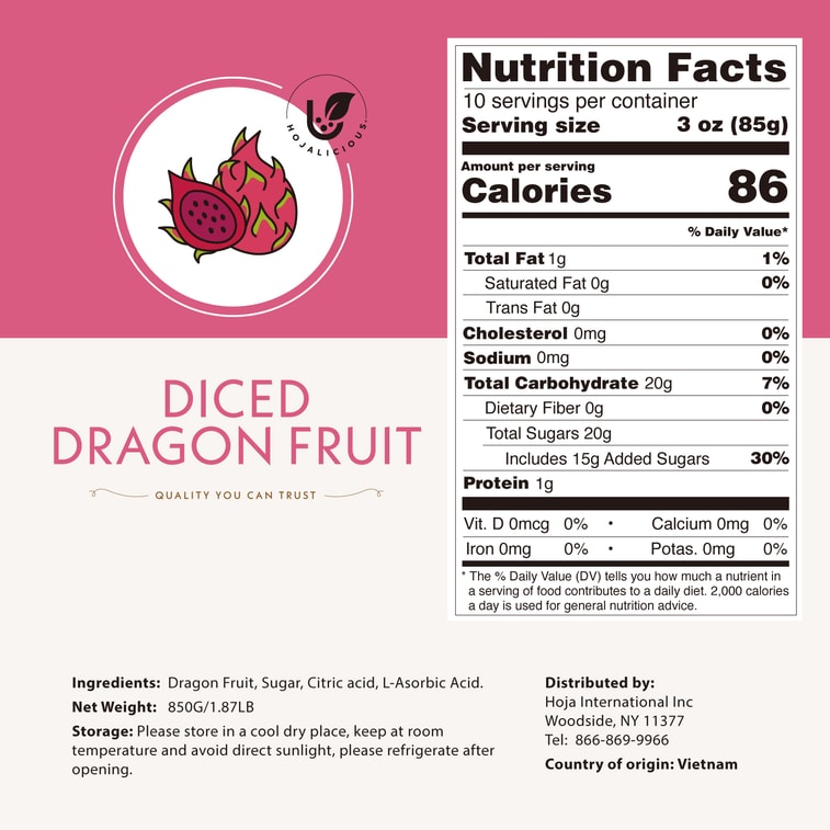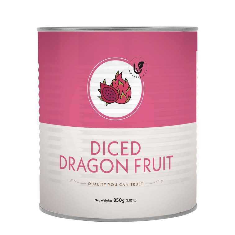 Hojalicious 新鮮火龍果顆粒罐頭 | 脆嫩多汁 | 奶茶/冰沙 | 開罐即食 | 家庭/餐飲通用 (850g)