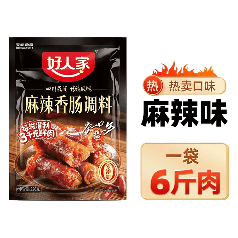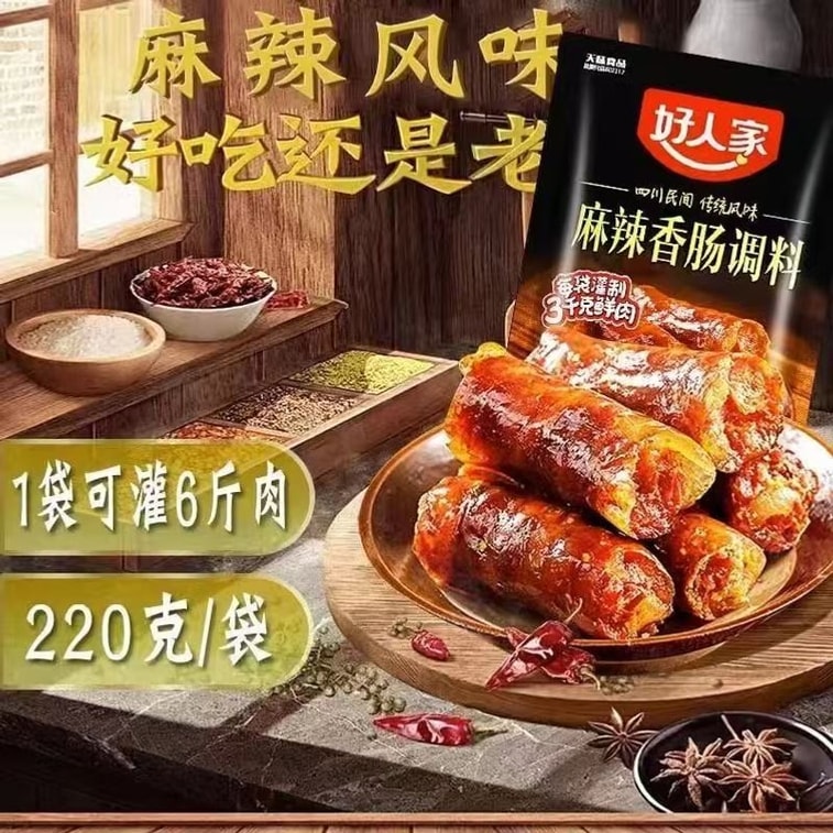 【中國直郵】 好人家 香腸調味麻辣五香味川味四川自製風乾灌腸調味臘腸醬料包 220g