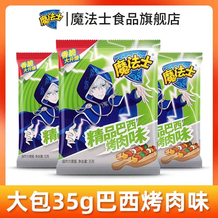 【中國直郵】 魔法士 乾脆面整箱裝乾吃麵大包裝35g懷舊晚上解餓解饞小零食小吃休閒食品 巴西烤肉口味35g*6袋