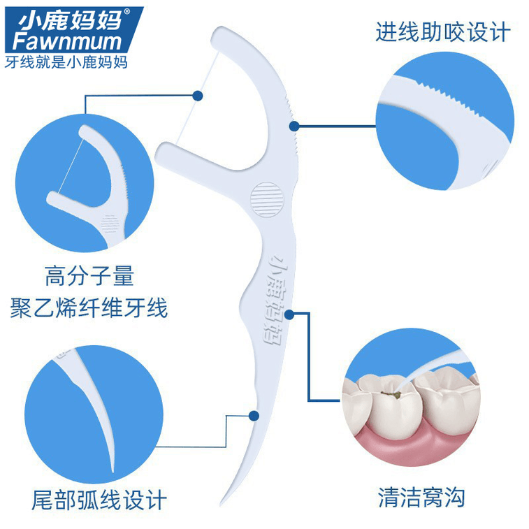 中國 小鹿媽媽 牙線 一次性 超細牙線棒 牙籤牙線盒裝 50支*1盒