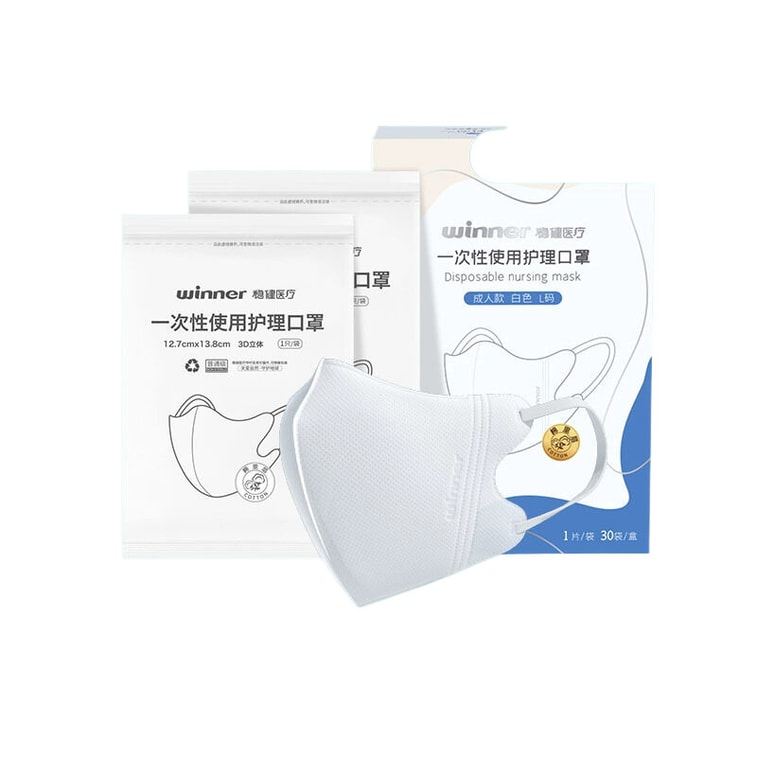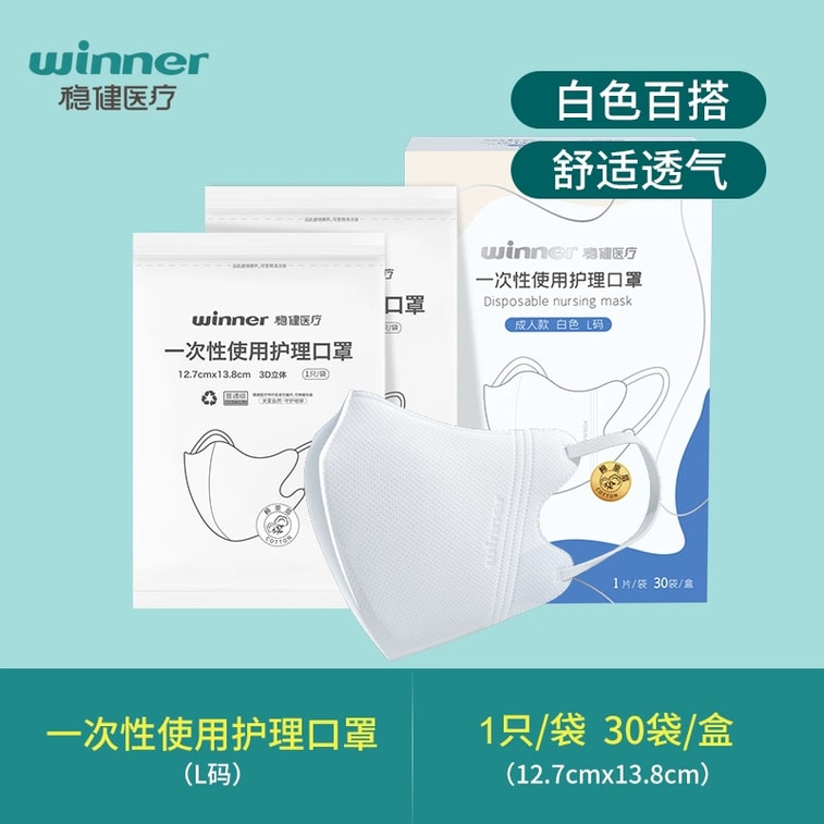 【中國直郵】Winners穩健醫療 3D立體透氣一次性護理口罩 300只 白色獨立裝 L碼(12.7cm*13.8cm)