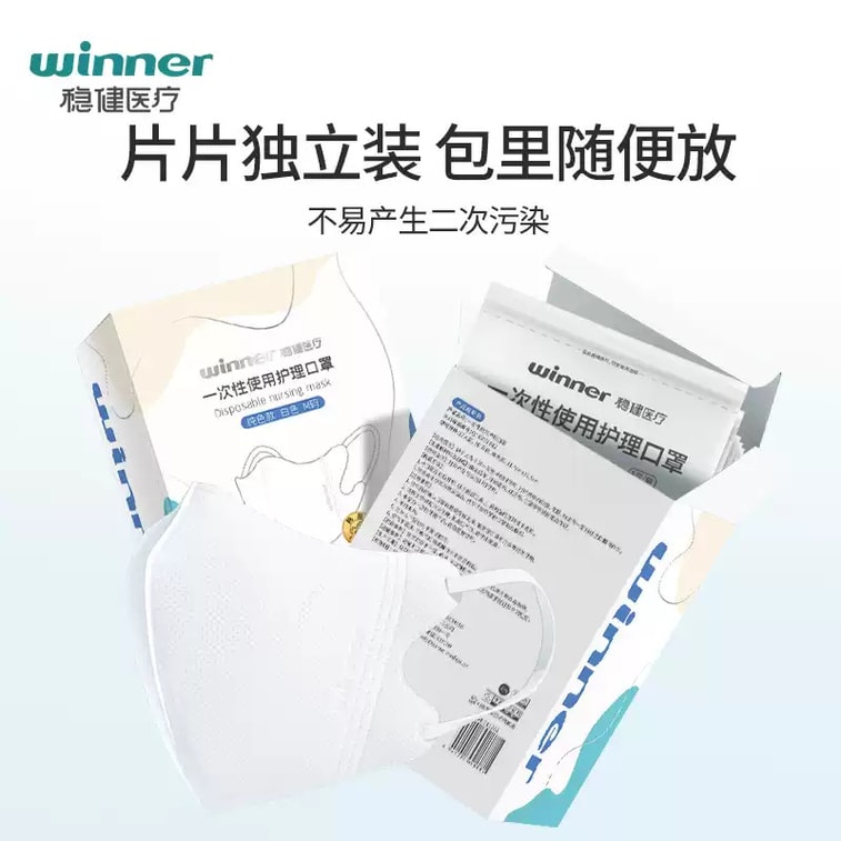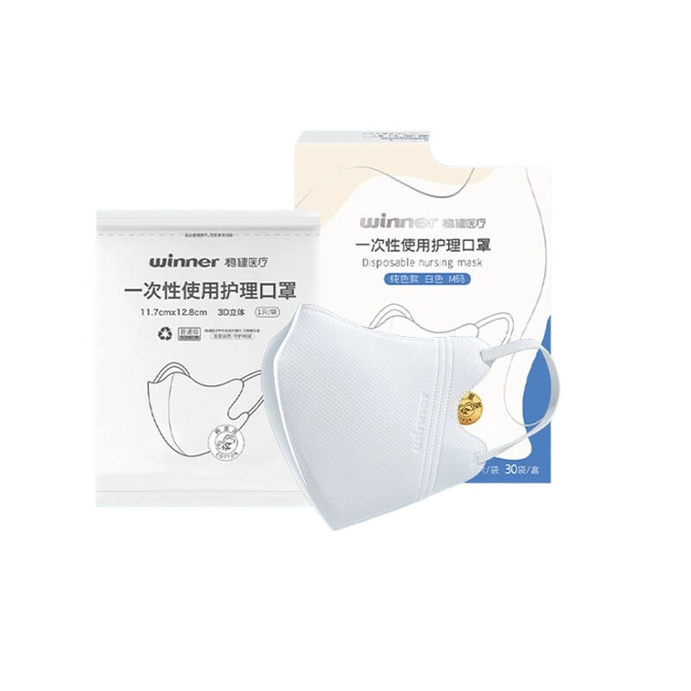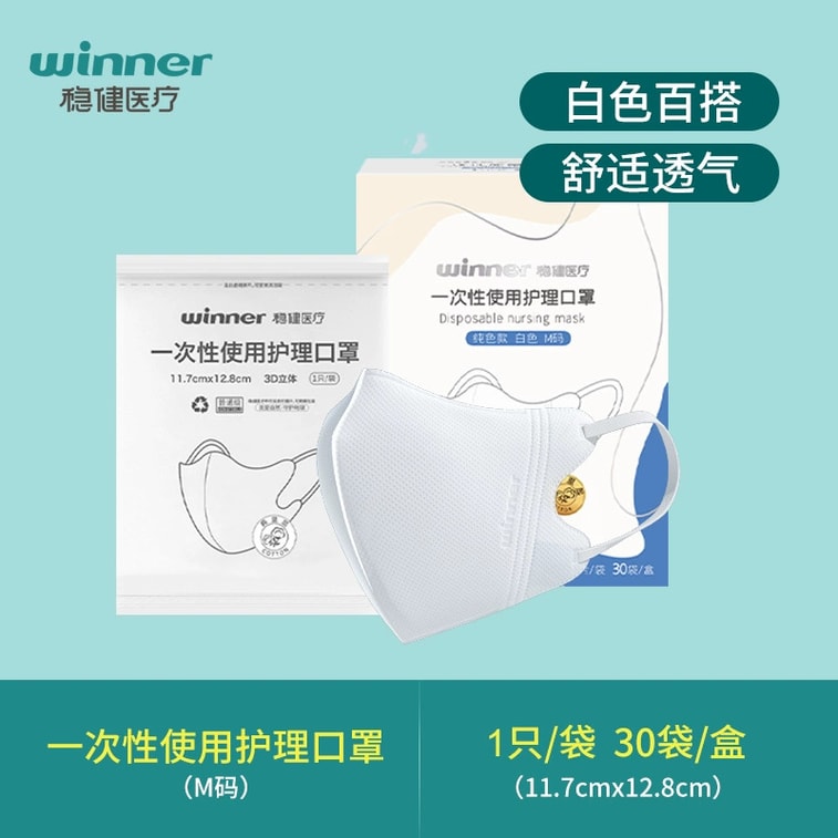 【中國直郵】Winners穩健醫療 3D立體透氣一次性護理口罩 300只 白色獨立裝 M碼(11.7cm*12.8cm)
