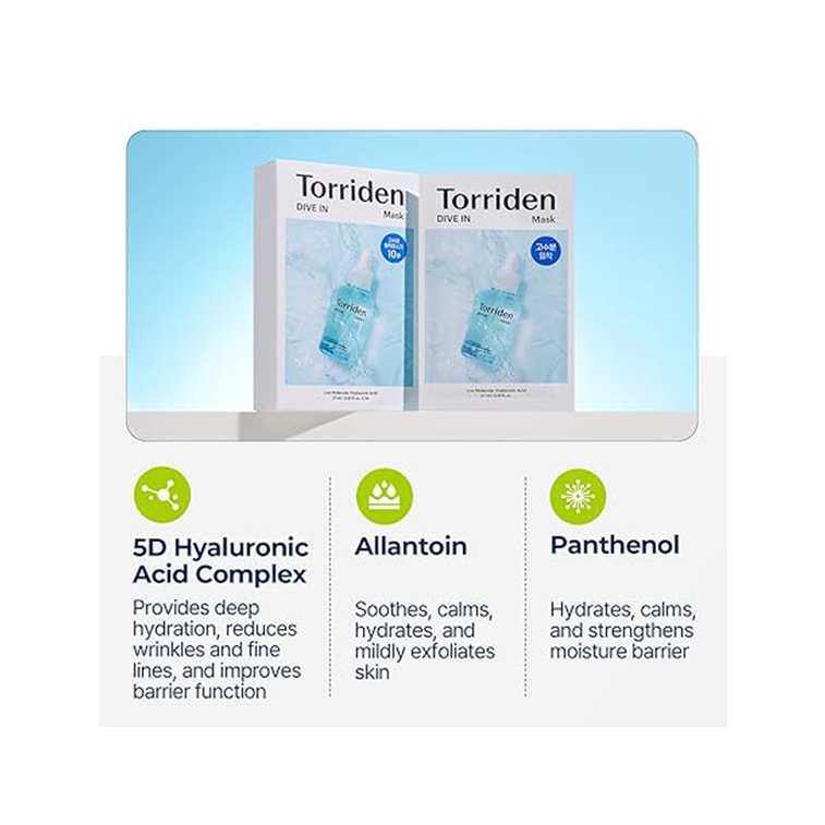 韓國 TORRIDEN Dive In 低分子玻尿酸保濕舒緩面膜 10片/盒 【新舊包裝隨機發】