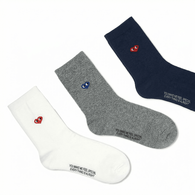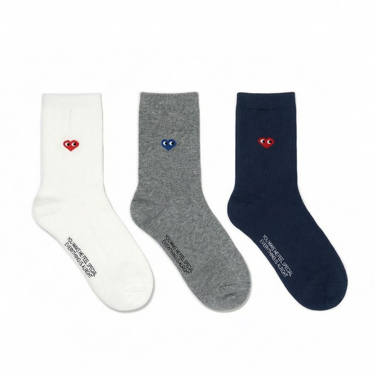 Dongdaemun Heart Cotton Socks, Breathable & Absorbent, Spring/Fall, 3 Pairs
