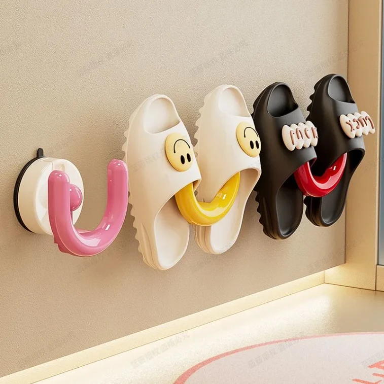 【中國直郵】 智家 多巴胺吸盤拖鞋架免打孔壁掛拖鞋瀝水架混色組合裝*4件