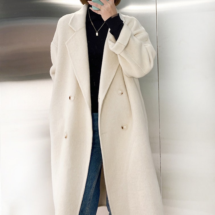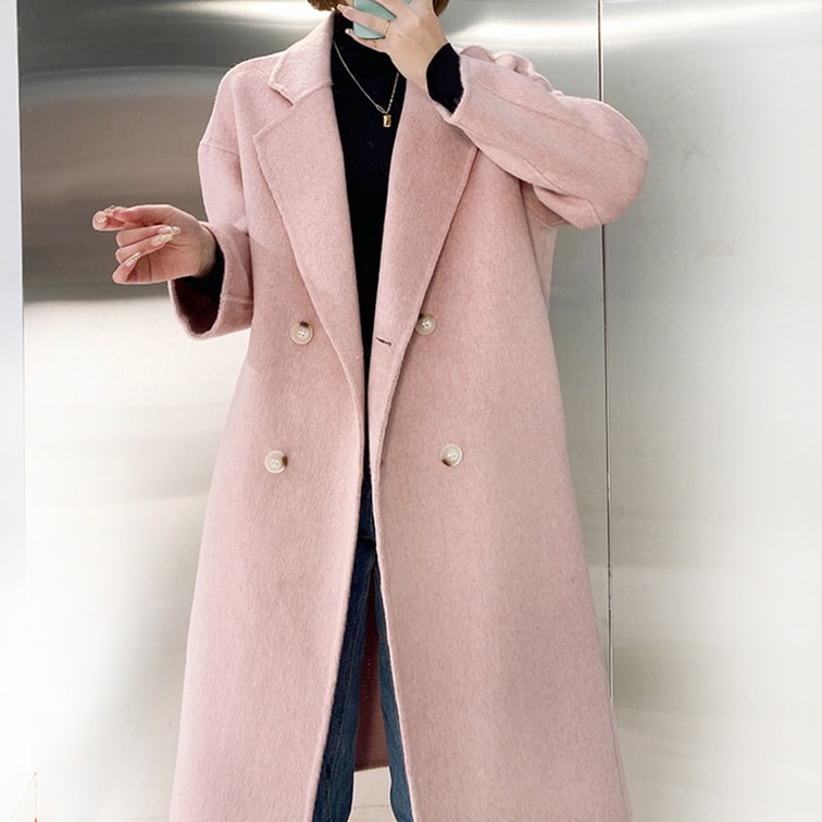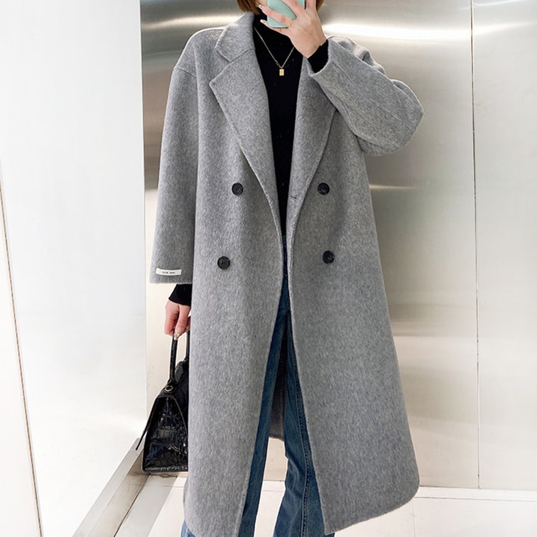 【中國直郵】 奢笛熊 羊毛寬鬆雙排扣雙面羊毛大衣 外套 黑色 S