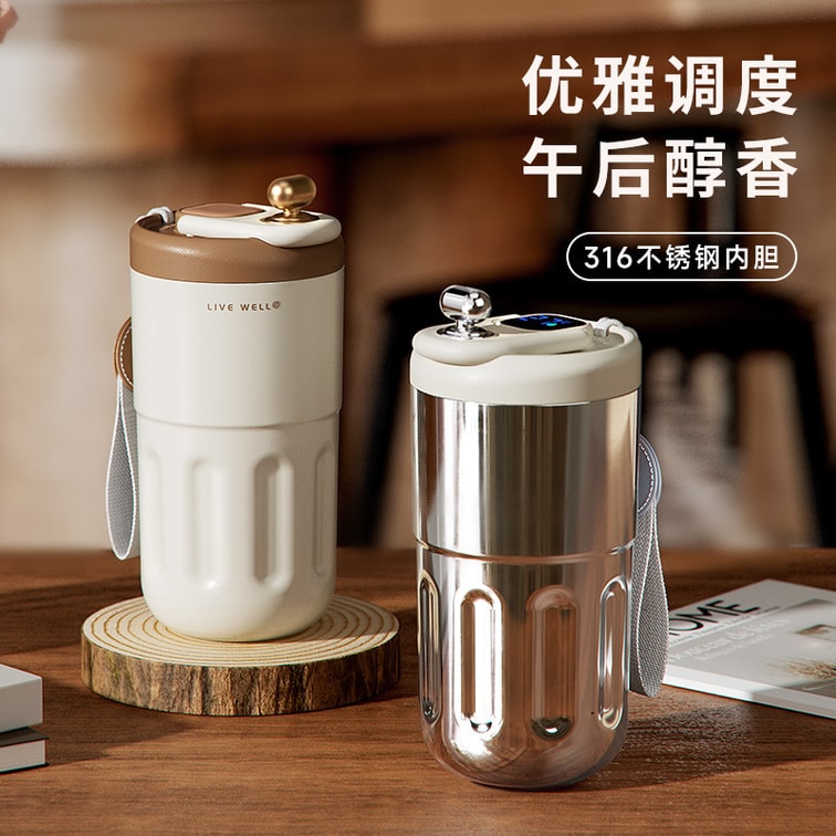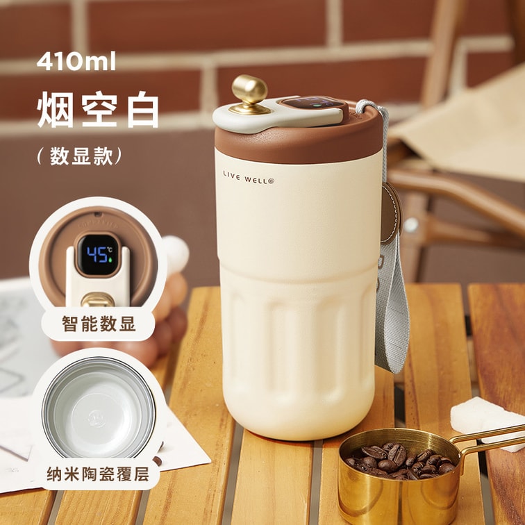 【中國直郵】RELEA物生物 咖啡保溫杯 410ml煙空白(智能顯溫款) 1件 316L不鏽鋼內膽
