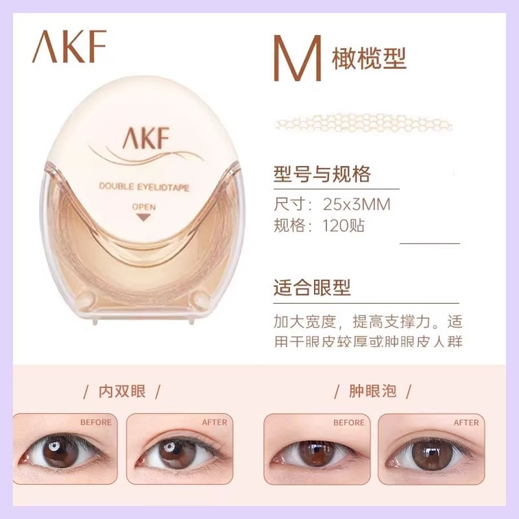 【中國直郵】 AKF 雙眼皮貼 女隱形自然無痕專用定型持久正品 橄欖型M【捲裝120貼】1件 | 亞米