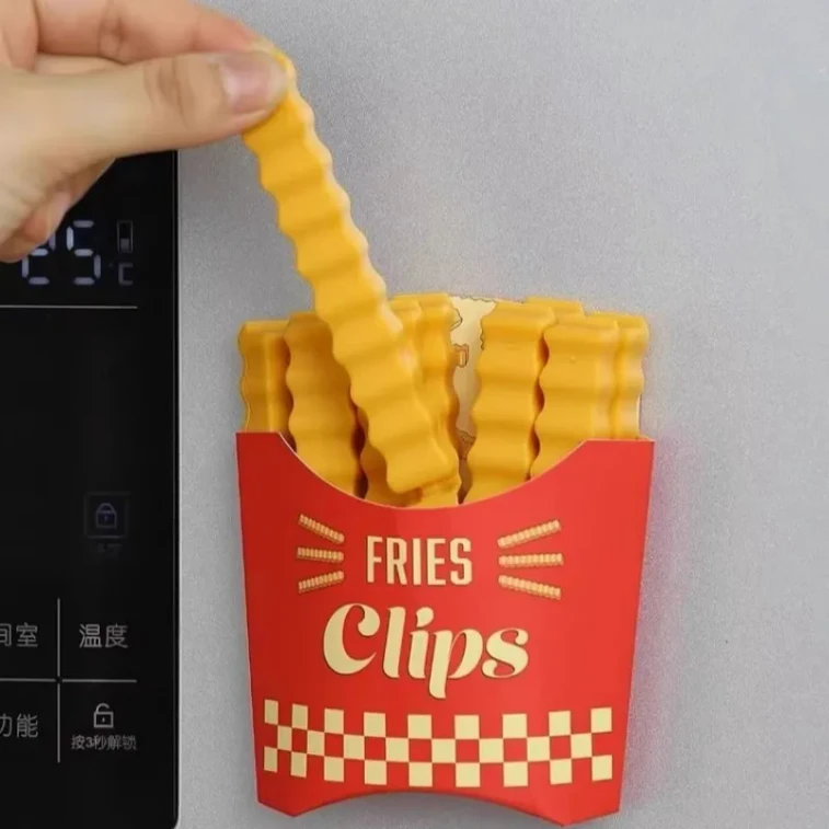 【中國直郵】 薯條零食物封口夾食品袋子保鮮夾冰箱磁吸好物防潮密封夾零食封口夾12個裝+1個磁吸收納盒