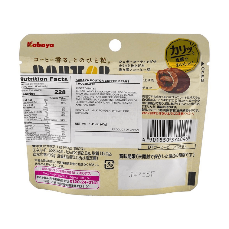 KABAYA 日本KABAYA 道吐咖啡豆巧克力 40g | 亞米