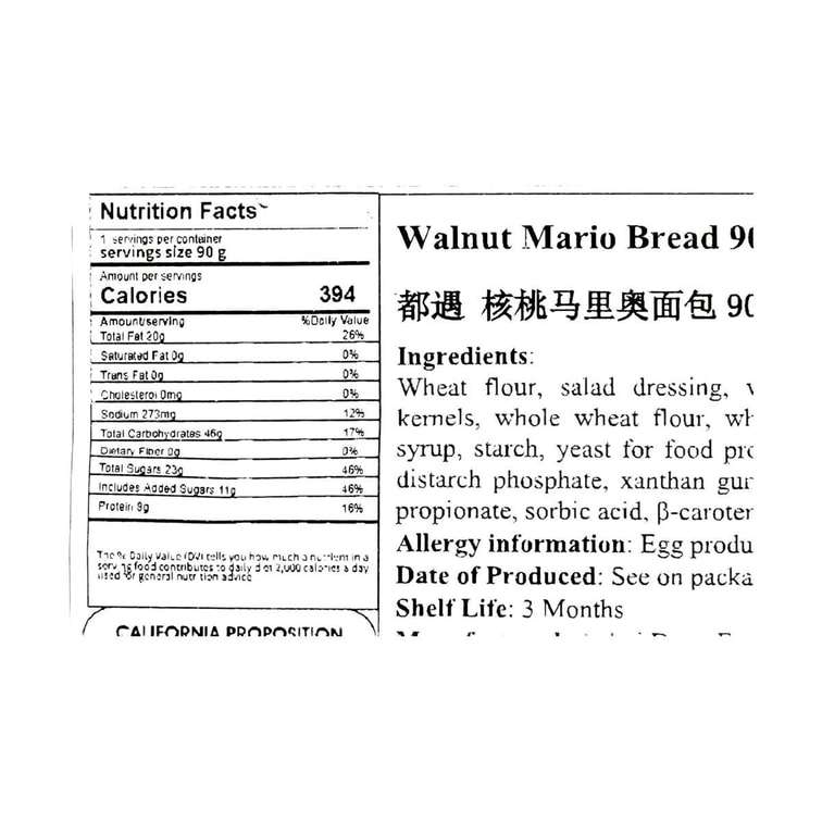 都遇 核桃瑪利歐麵包 乳酪芥末風味夾心 90g【營養早餐】【0反式脂肪】