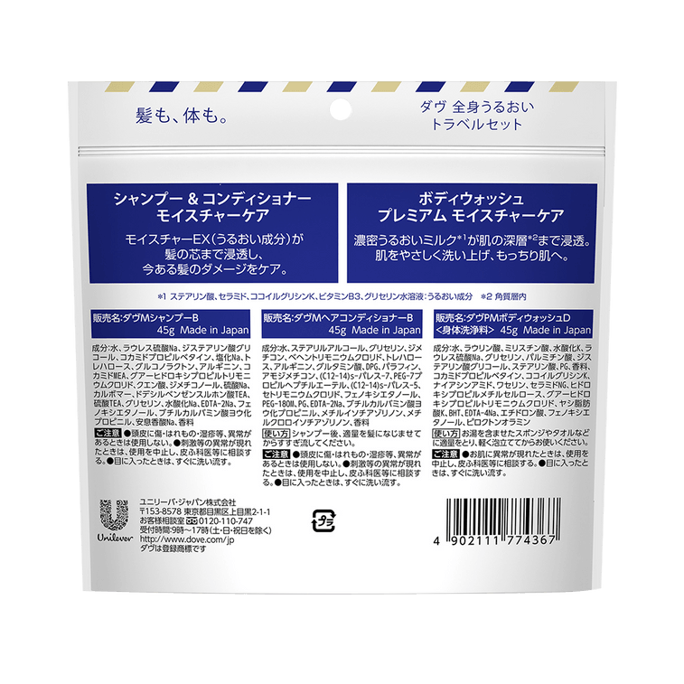 多芬 洗髮精+護髮素+沐浴露 各45g旅行套裝