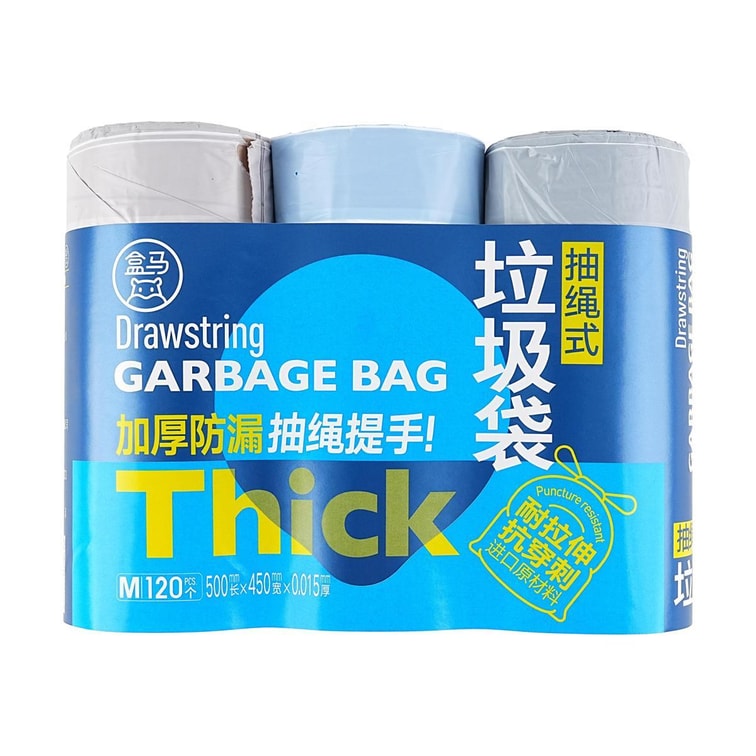 盒馬 抽繩式垃圾袋 清潔袋 M號 120個