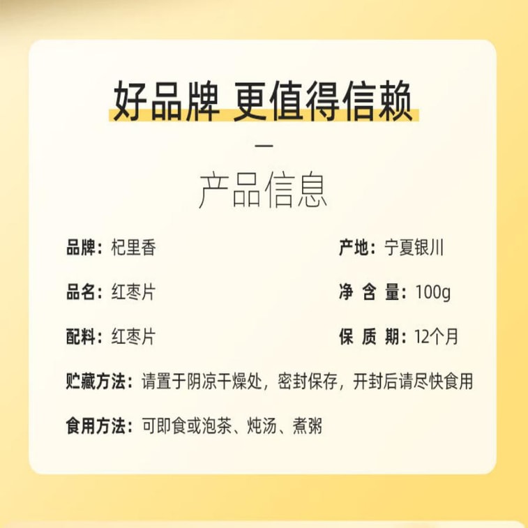 【中國直郵】 杞里香 紅棗乾 100g 新疆大棗去無核紅棗乾 若羌灰棗乾片即食零食棗和田大紅棗片 棗圈 無核棗片 脆乾棗