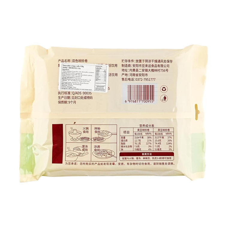 豆來運 雙色響鈴卷 120g【雙拼組合 豆香濃鬱】【黑豆+黃豆】【火鍋麻辣燙螺螄粉配菜】