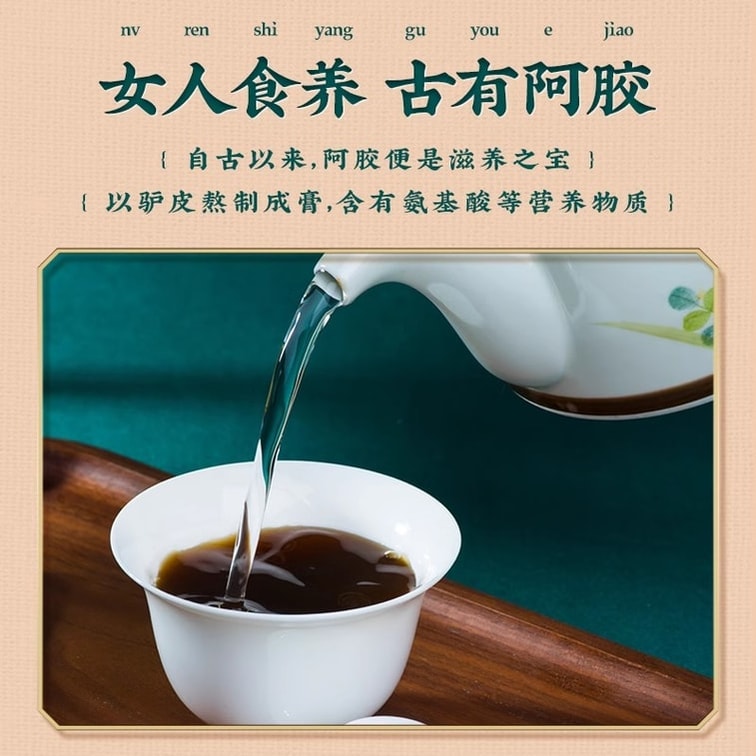 | 成分 | 紅糖、大棗、桃仁、玫瑰花(重瓣紅玫瑰)、阿膠、肉桂、蜂蜜、水、 黃酒 |