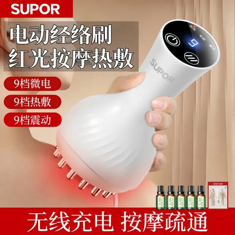 【中國直郵】 蘇泊爾 電動經絡刷疏通儀熱敷按摩腰部背部大肚子全身通用刮痧神器【陶白色】*1台