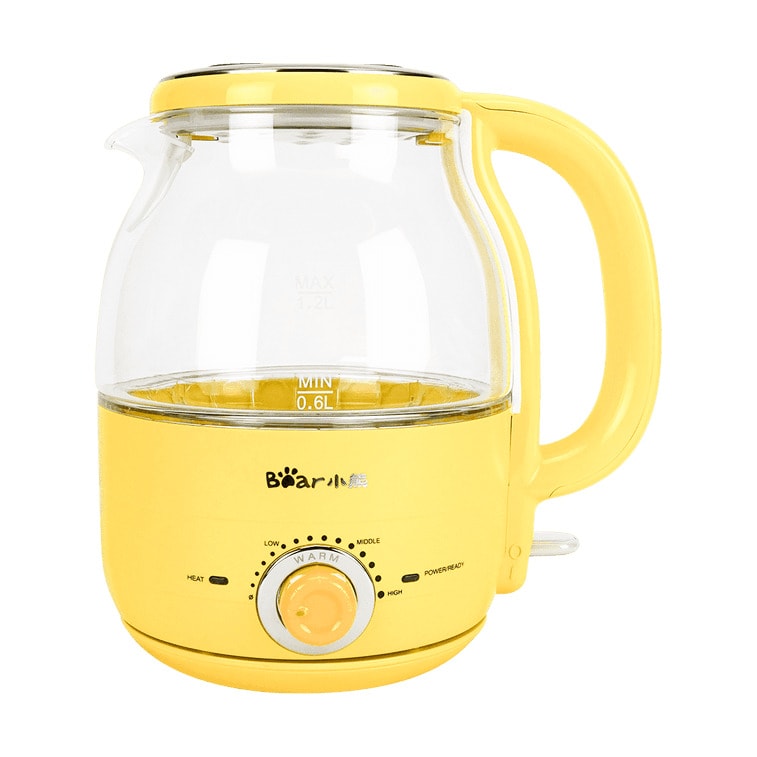 小熊 【美國本土出貨】 玻璃煮茶壺電熱燒水壺 1.2L 蜜蜂黃 110V | 亞米
