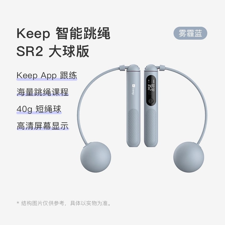 【中國直郵】 Keep 無線跳繩 智慧數 減重健身專用 家用燃脂減脂運動 App課程跟練 40g無線大球 霧霾藍 SR2大球版
