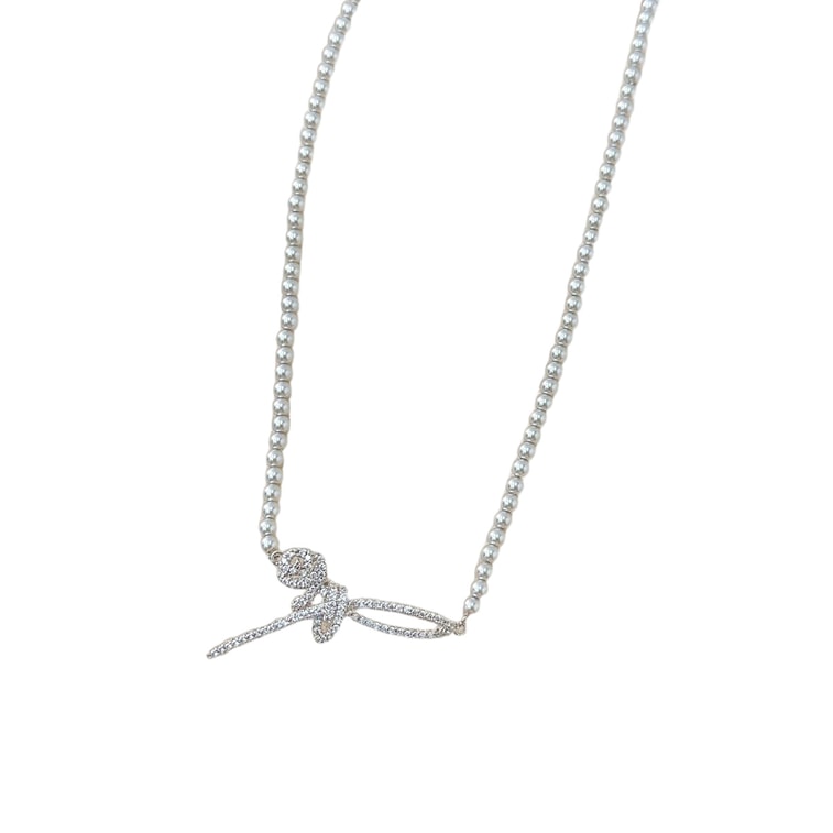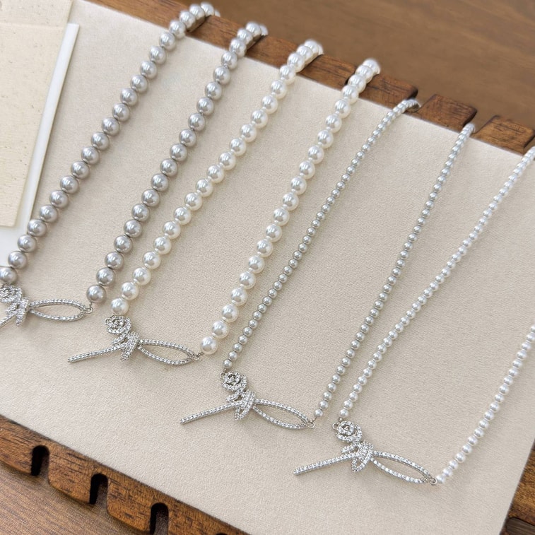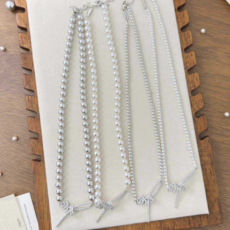 【中國直郵】 HSPM 高級感玫瑰絲帶項鍊輕奢氣質優雅鎖骨鏈施家珍珠項鍊女秋冬配 灰色3mm 1個