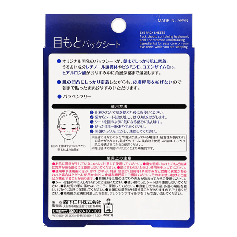 【日本直郵】日本 森下仁丹 保濕改善細紋配合透明酸 眼膜 10枚 (發貨最新包裝)