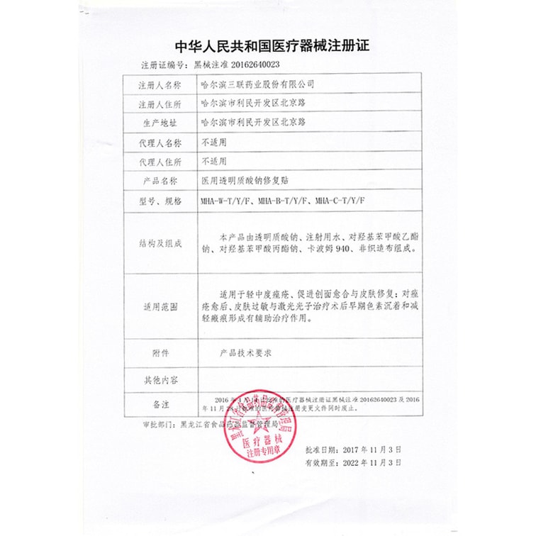 [中國直郵]敷爾佳VOOLGA 醫美透明質酸鈉系列面膜 黑膜 醫用玻尿酸鈉修復貼 5貼 1盒裝