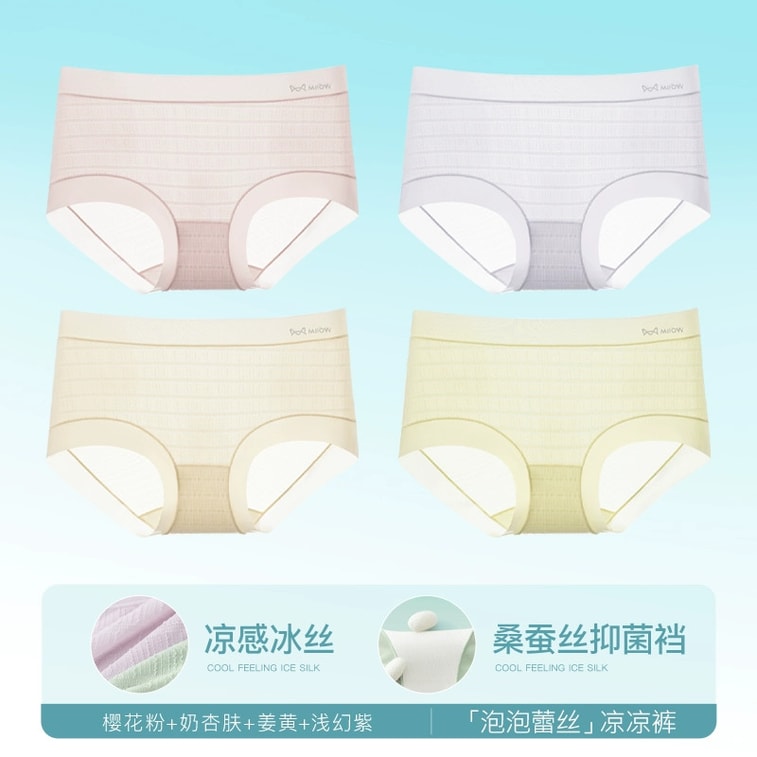 【中國直郵】 貓人 Miiow小姐內褲 冰絲薄款蕾絲內褲 無痕涼感透氣速乾 M號 8條裝 櫻花粉x2 奶杏膚x2 薑黃x2 淺幻紫x2 | 亞米