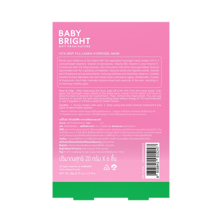 泰國 BabyBright 水凝膠面膜 煥活肌膚 淡化斑點 菸鹼醯胺與維生素A/B/C/E 20g 6片裝