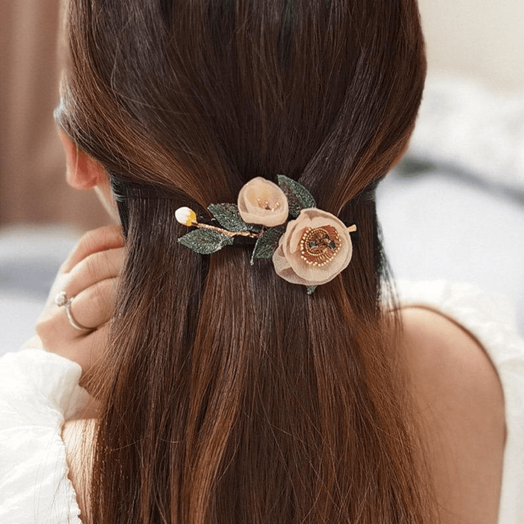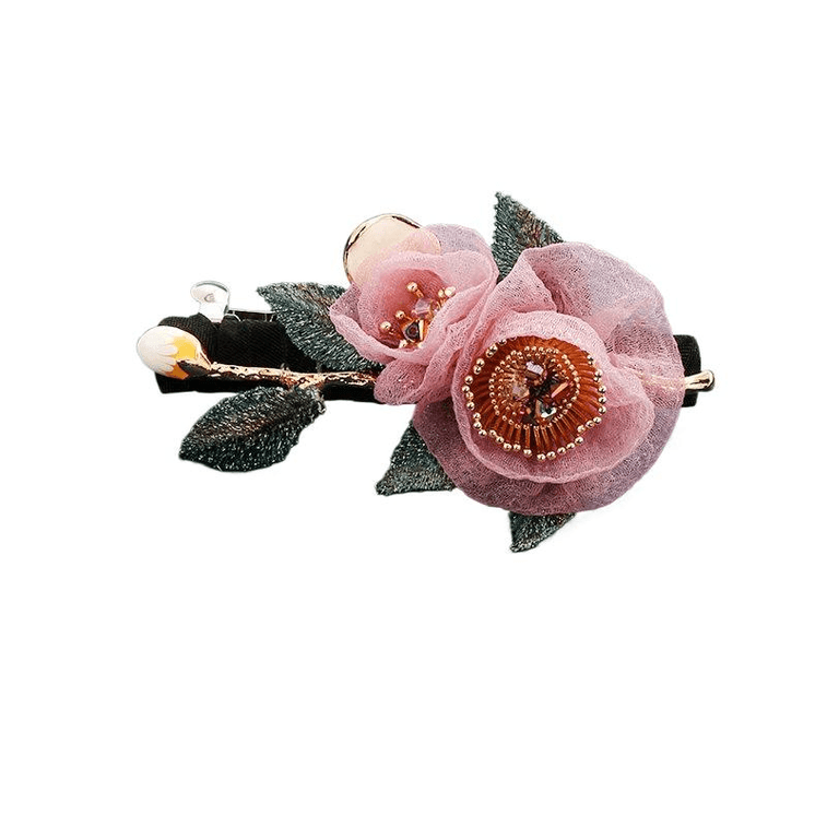 【中國直郵】 閨美飾品 花揚髮夾女高端手工刺繡花朵髮卡頭飾 粉紫色 8.5*5厘米