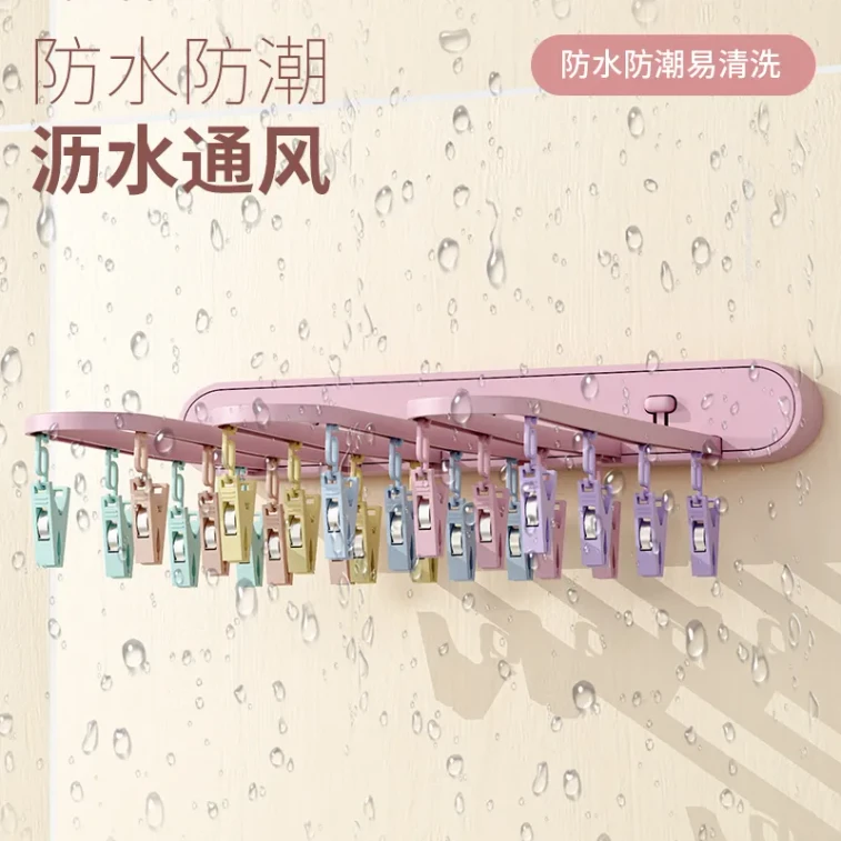 【中國直郵】 折疊衣架免打孔家用掛衣神器晾衣架蜜桃粉*1件