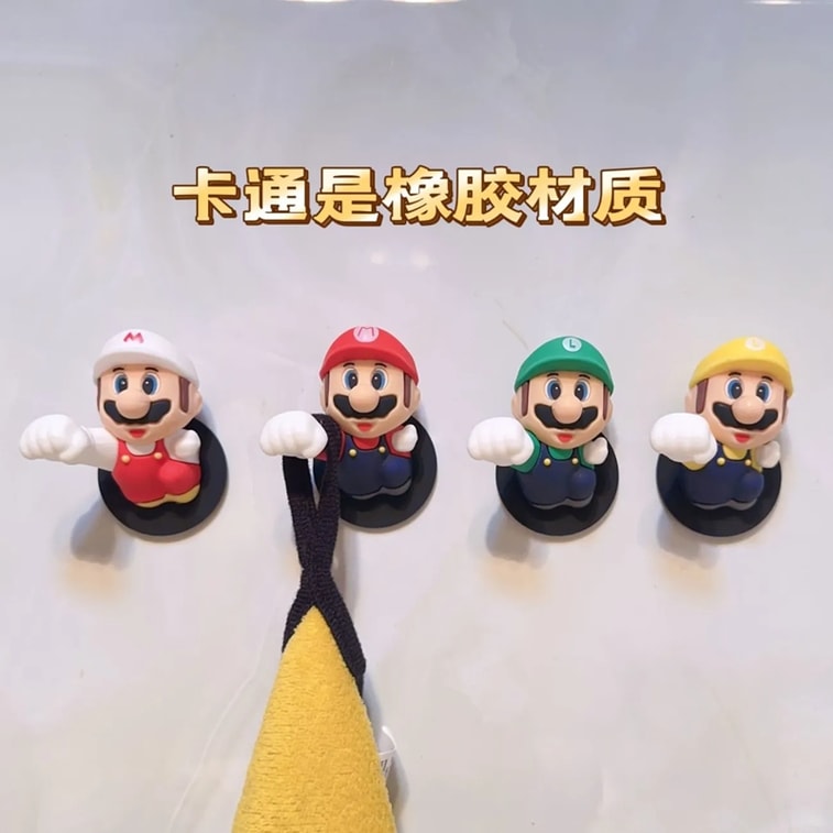 【中國直郵】 瑪利歐掛鉤免打孔擦手巾掛鉤紅/綠/白/黃混色*4個