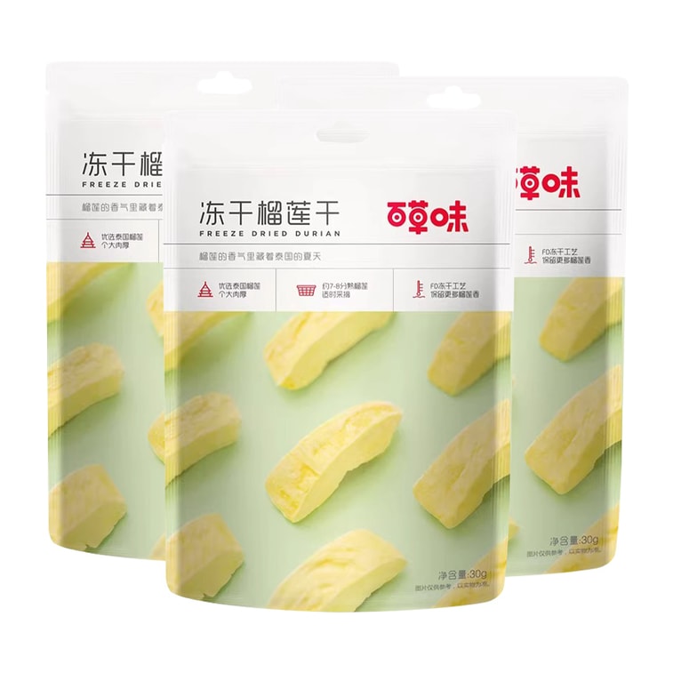 百草味 BE&CHEWY Freeze-Dried Durian 90g (3x30g) - 100% Real Thai Durian, Non-Fried Healthy Snack, Vitamin-Rich Fruit Chips, Gluten-Free Natural Treat, Crunchy Dried Fruit | 亞米