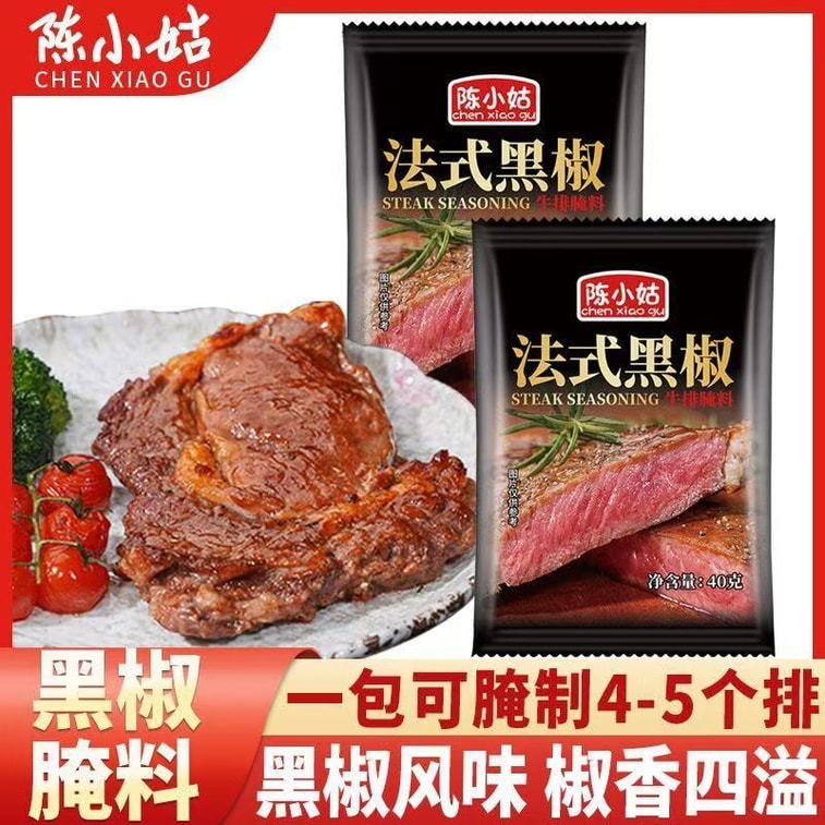 陳小姑 陳小姑 法式黑椒牛排醃料 40g*3袋 燒烤調味料 醃肉料 家用商用專業調味料 | 亞米
