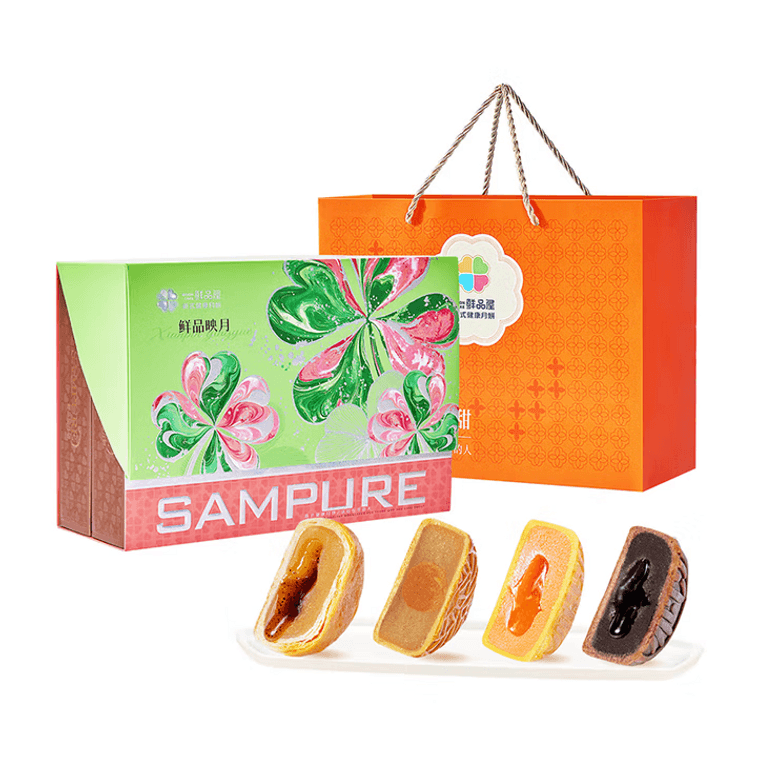 【中國直郵】 臻味坊 鮮品映月中秋月餅禮盒 B版綠色 940g 高檔新式健康流心月餅送禮