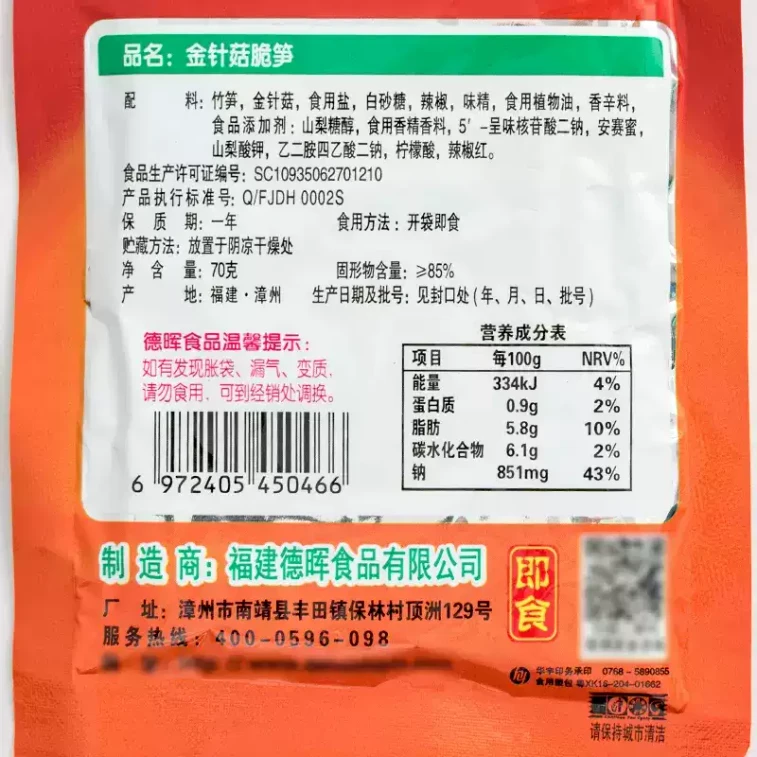 閩香 福建 金針菇脆筍 70g*5包 下飯菜醬菜醃菜佐餐泡菜筍片拌飯配粥即食鹹菜
