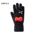 【中國直郵】 三福 趣味結形五指手套 可愛戶外保暖手套 蘋果黑 均碼一雙裝