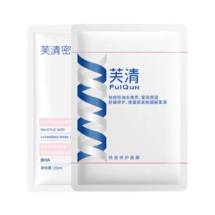 【中國直郵】芙清祛痘修護面膜2片+芙清密鑰水楊酸清顏煥膚面膜2片
