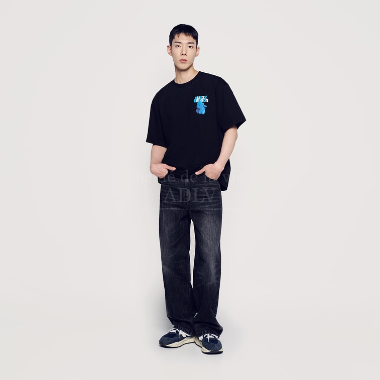 【韓國直郵】 韓國 acmé de la vie ADLV 毛絨字體龍短袖T卹 黑色 2