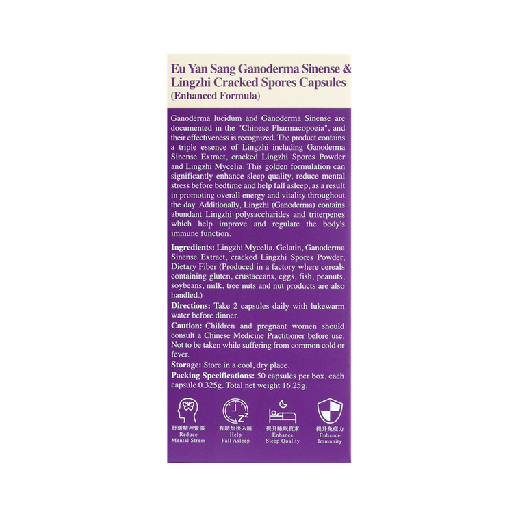 【香港直郵】 余仁生 香港 安睡紫靈芝 (破壁)孢子膠囊 50粒