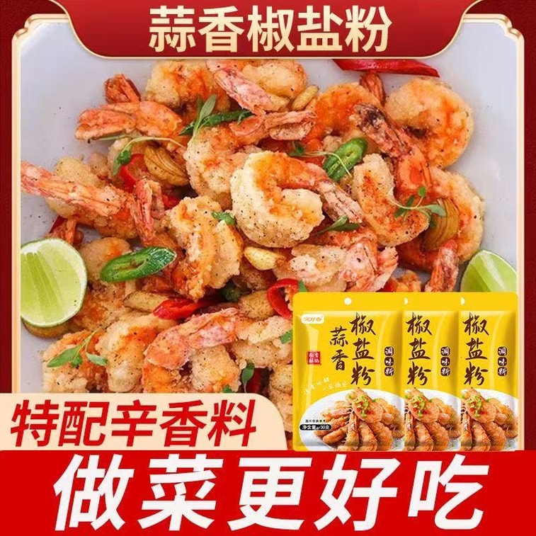 潤萬香 【年貨必備】蒜香椒鹽粉家用袋裝鹽焗調味料鹽焗皮皮蝦排骨調味料專用椒鹽調味料30g*2袋