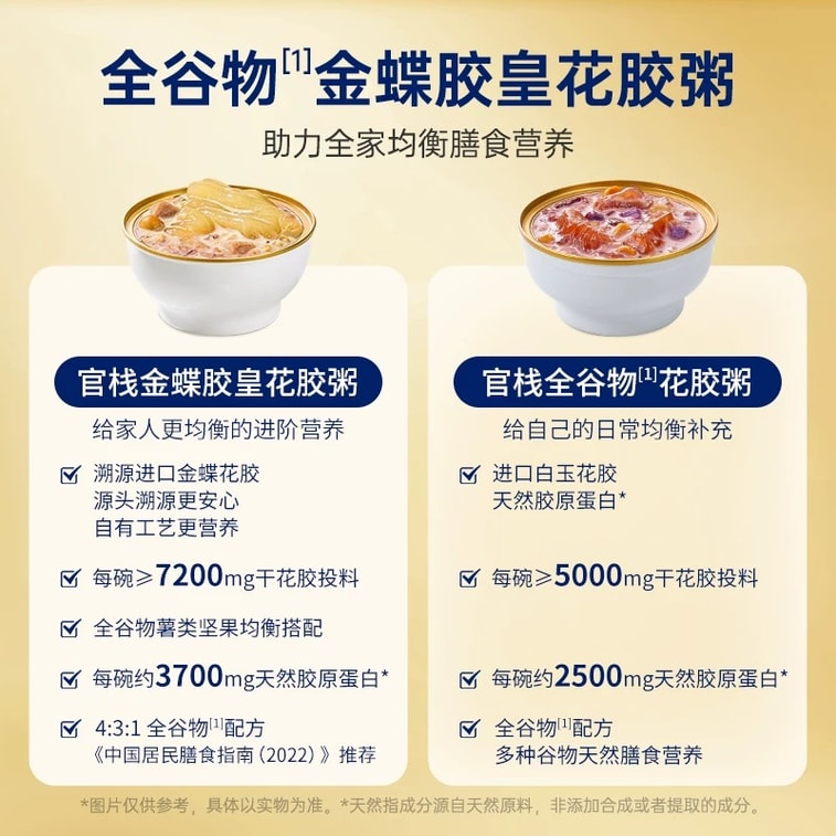 【中國直郵】 官棧 新年 送長輩禮盒金蝶膠皇花膠粥進口金蝶膠皇即食花膠粥全穀物 220g*8碗禮盒