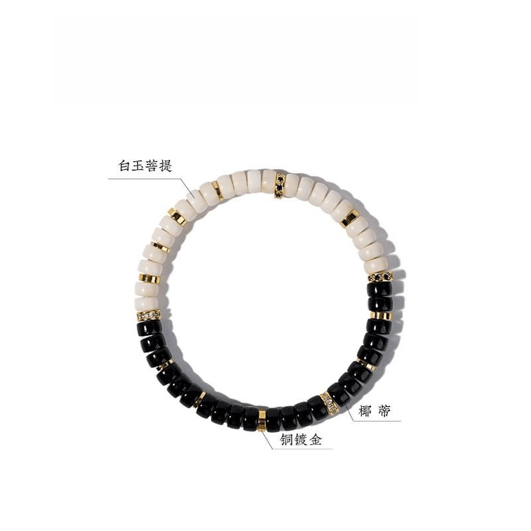 【中國直郵】 大運河 玄白相生白玉菩提手串 白玉菩提+銅鍍金 7*4*44顆