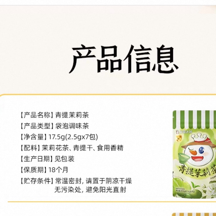 【中國直郵】 蜜雪冰城 雪王青提茉莉獨立茶包原葉袋泡17.5g*2袋