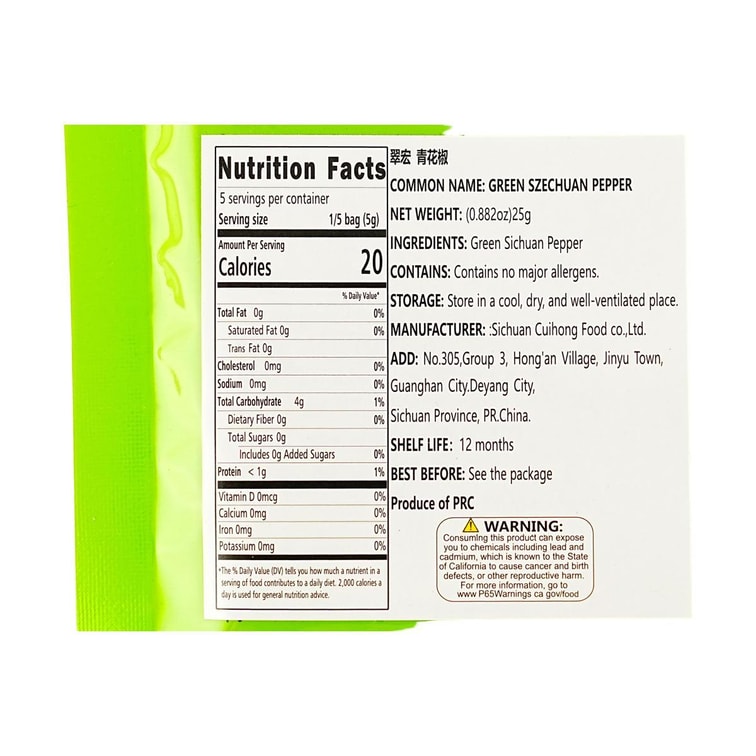 翠宏 青花椒 25g【四川特產】【滷味炒菜火鍋乾料】