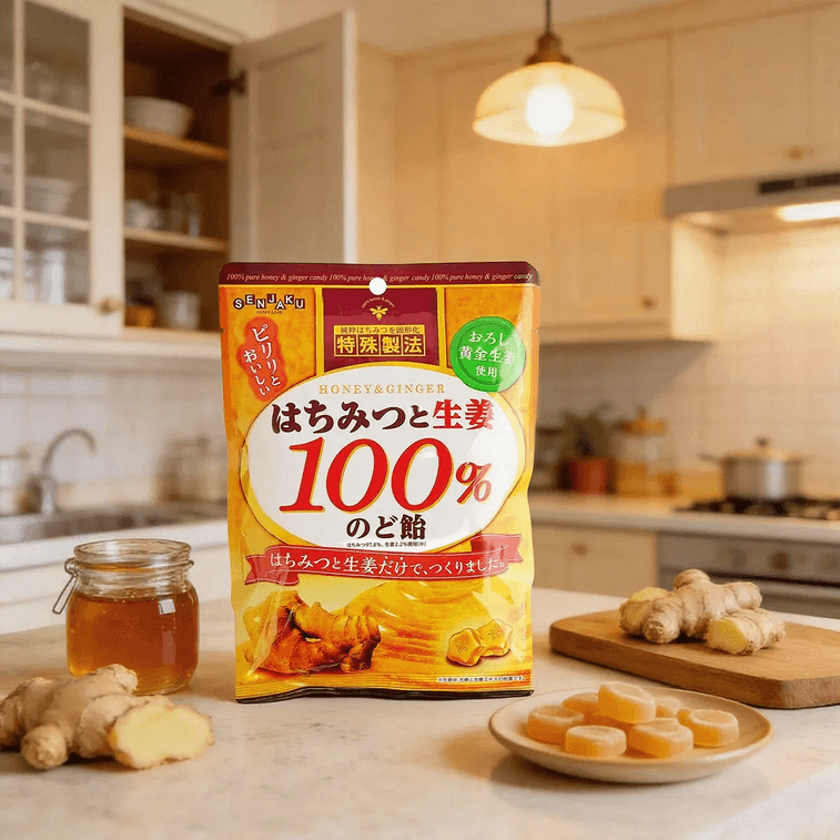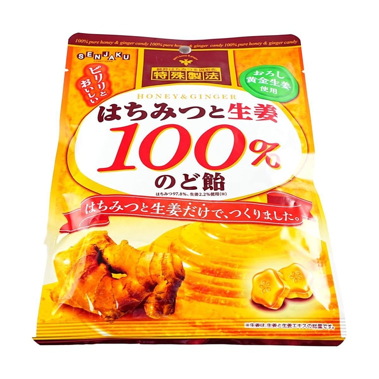 日本SENJAKU扇雀飴本鋪 蜂蜜生薑潤喉糖 50g【使用黃金生薑】【配料乾淨0添加】