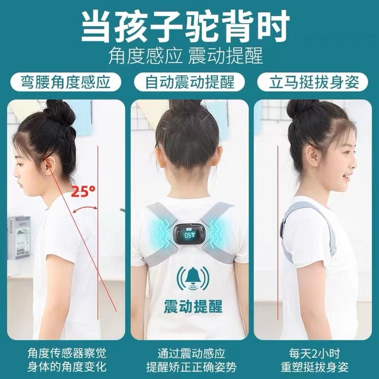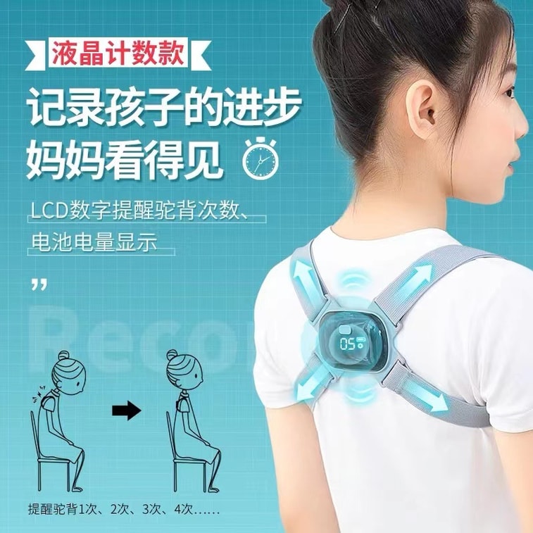 【中國直郵】柏意 智慧矯正背帶 防駝背矯正帶 成人兒童通用 智慧駝背矯正器 USB充電 灰色