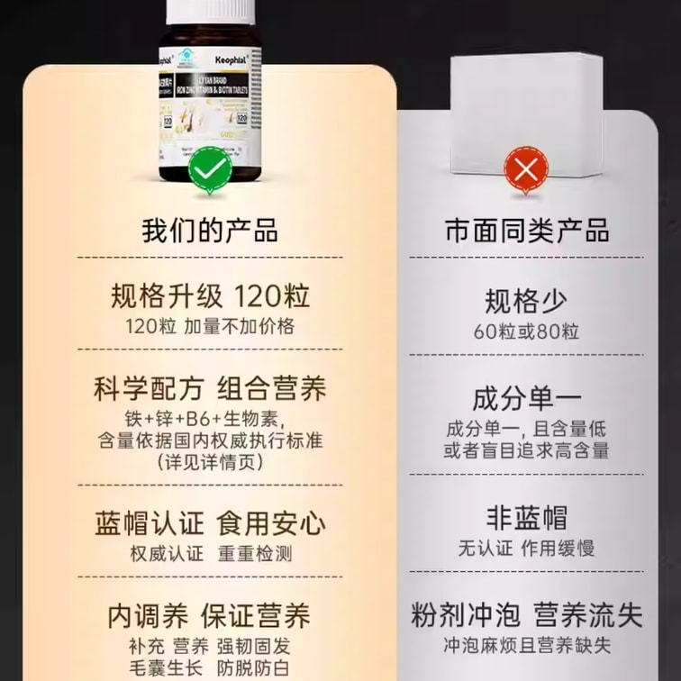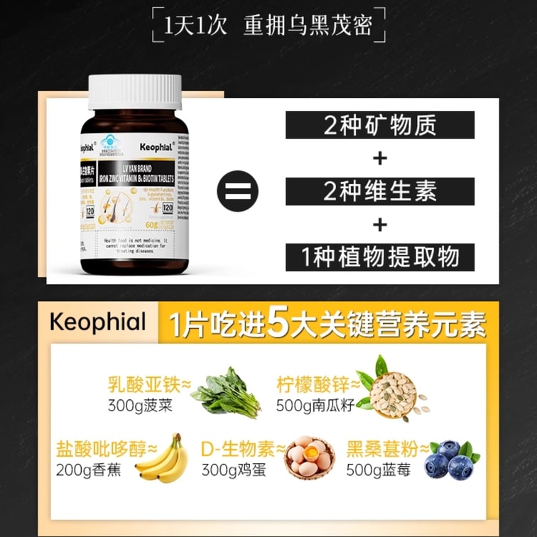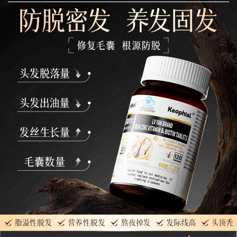 【中國直郵】 KEOPHIAL 防脫髮營養片 生物素維生素B6B7 360片/3瓶